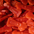 VERY VERY Chewy Ferrari shaped gummy with raspberry flavor. VERY hard outside coating with chewy inside.